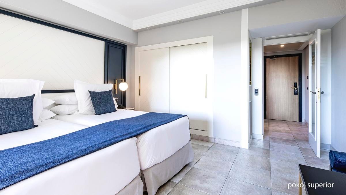 Superior kétágyas szoba foglalható egy főre pótágyazható, kb. 27m2 területtel. A szobában vagy két egy személyes ágy, vagy egy franciaágy van elhelyezve. A szobához saját fürdőszoba tartozik, hajszárítóval, WC-vel, zuhannyal. Egyes szobák felár ellenében részlegesen tengerre néző kilátással is foglalhatóak. Minden szobában egyénileg szabályozható légkondicionáló működik, síkképernyős Tv és felár ellenében minibár használatra van lehetőség. A szobákhoz erkély tartozik, asztallal és székkel.A szálloda egész területén WiFi működik.