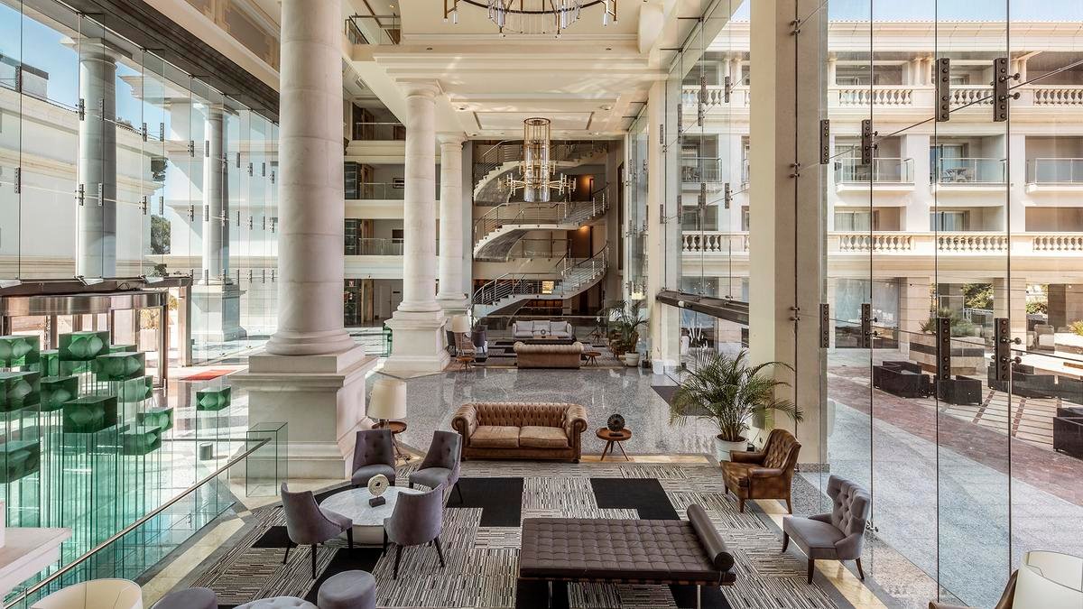 A szálloda rendszeresen felújított, modern és elegáns épület. Az 5 csillagos luxus hotelban 184 szoba van és 4 egymáshoz kapcsolódó 3 emeletes épület. Monumentális, elegáns lobbyjában a recepció 24 órás nyitvatartásban működik. A szálloda területén több fajta étterem is elérhető, többek között az Olympus étterem, a The Grill teraszos étterem és a Mare étterem. Ezekben van nemzetközi, spanyol, mediterrán és tengeri konyha, show cooking és gyermekmenü is. Az éttermek mindegyikében elvárt a hivatalos öltözködési rend, az uraknak hosszú nadrágos viselet. Valamint található a szállodában lobby és medence bár, pénzváltó, TV-terem, parkoló és 1050 fős konferenciaterem. Felár ellenében szobaszerviz, orvosi ügyelet, gyermekfelügyelet (4-12 éves korig), fodrászat, mosoda, autó-, motor- és kerékpárkölcsönzés szolgáltatások vehetőek igénybe. A WiFi a szálloda egész területén ingyenesen használható. Hitelkártya elfogadás: Visa, MasterCard, American Express.
